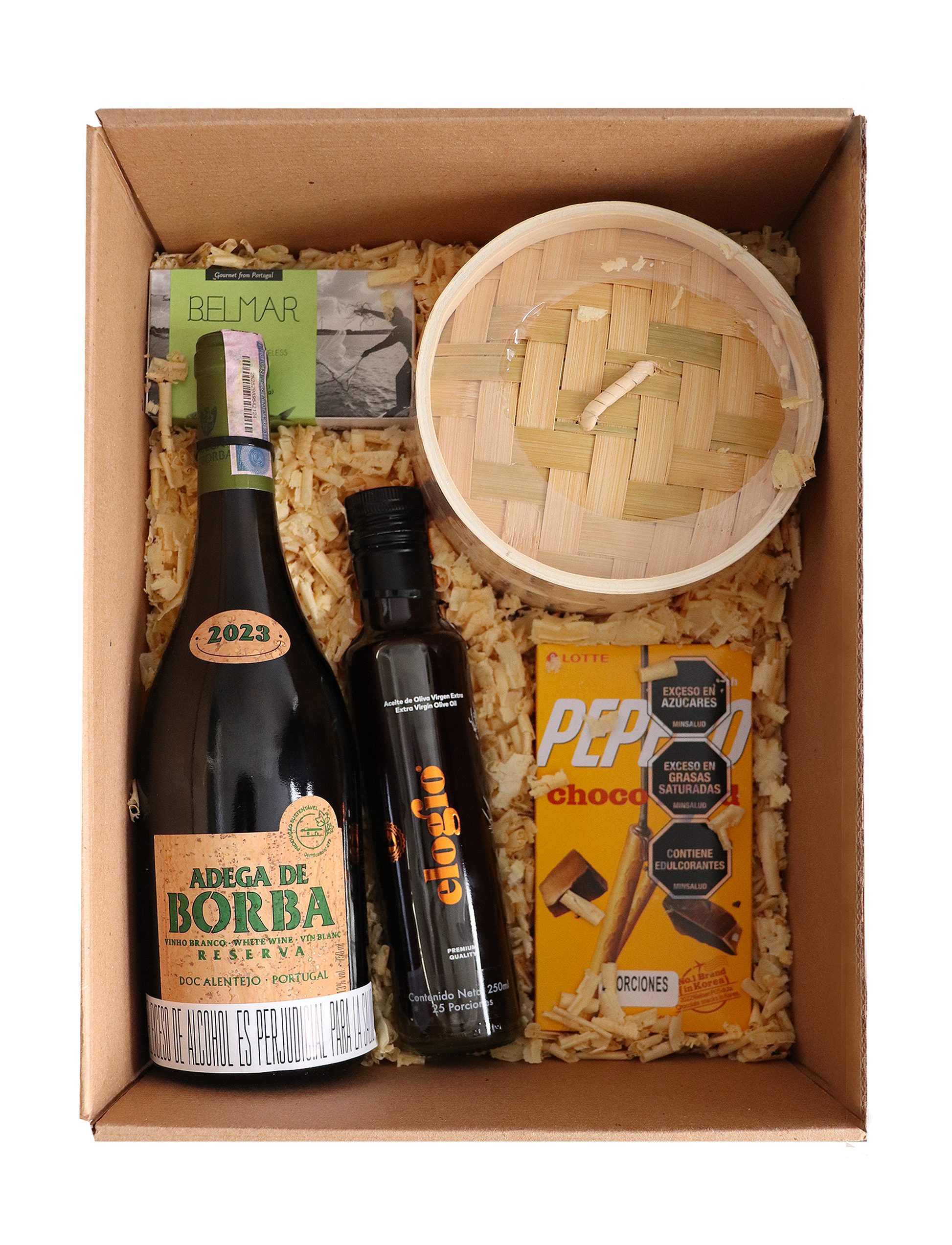 🍷 Vino Blanco Adega de Borba Un vino portugués elegante, fresco y aromático, perfecto para acompañar pescados, mariscos o disfrutar en un momento especial. Su sabor equilibrado lo convierte en protagonista ideal de esta experiencia gourmet.