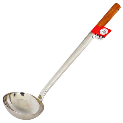 Cucharón de metal largo con mango de madera ideal para preparaciones al wok. Medidas: 48,8 x 13 x 4,5 cm