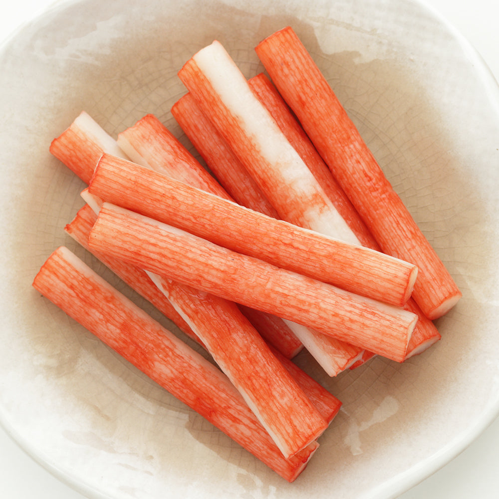 Palmitos de cangrejo hechos a base de pescado blanco. Ideal para usar como ingrediente en la preparación de sushi, como snack pankonizado o en ensaladas.